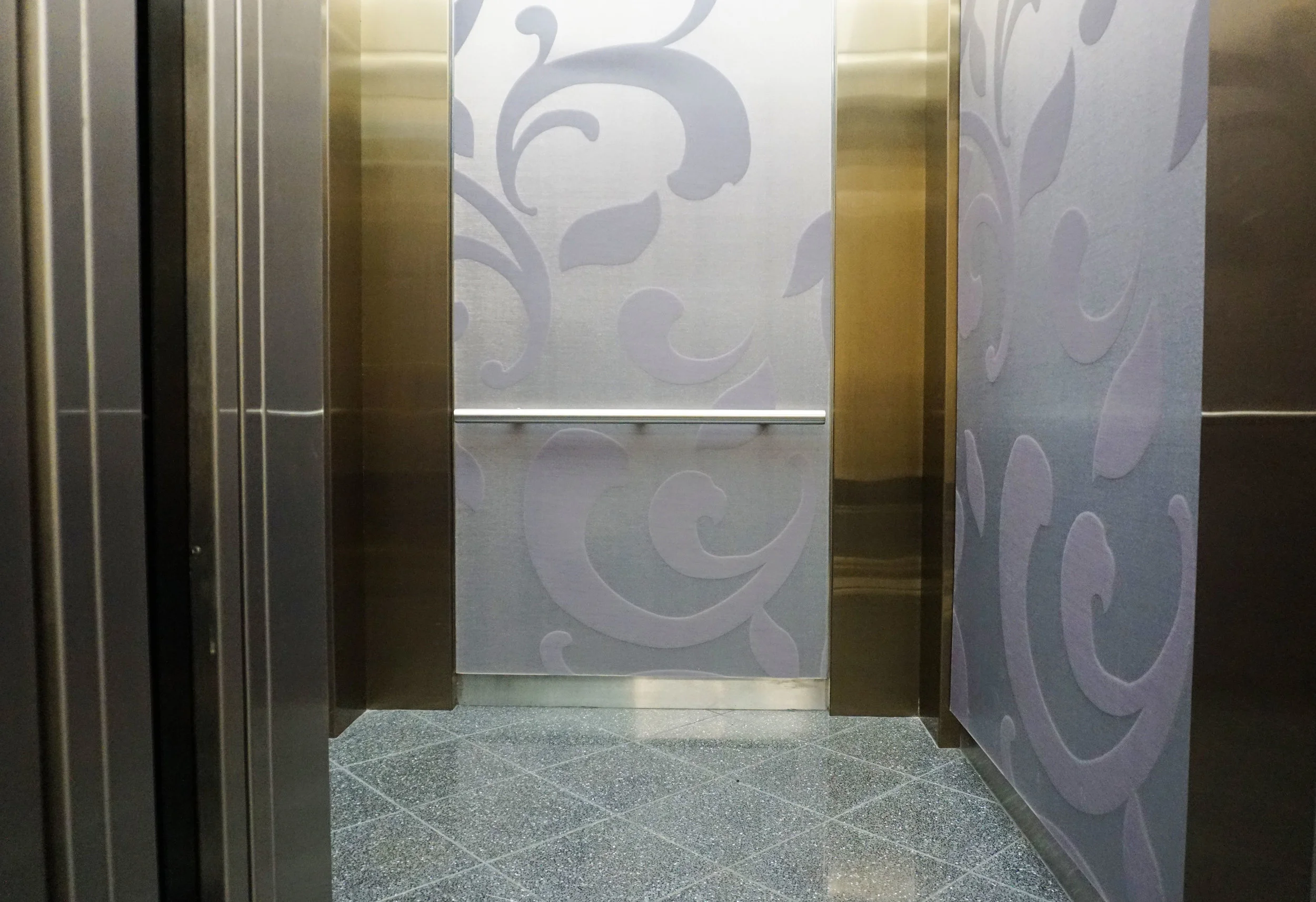 The Bricken Arcade, or 230 W38th / 225 W37th Street, is a 217-foot commercial building centrally located in Manhattan's Garment District. Built in 1923 and designed by Gronenberg & Leuchtag, the building had recently underwent a multi-million dollar renovation involving new windows, bathrooms, lobby and all six passenger elevators. Up until their modernization, the Bricken arcade housed some of the few remaining elevators still being manually operated in New York City. Their new elevators are composed of rimex stainless steel nickel satin, wausau-micro floors, custom 3form "varia ecoresin" panels, and an eos lighting system. The new design is a stark difference to what was once there, undoubtedly bringing the Bricken Arcade to the forefront of 21st century interior design.